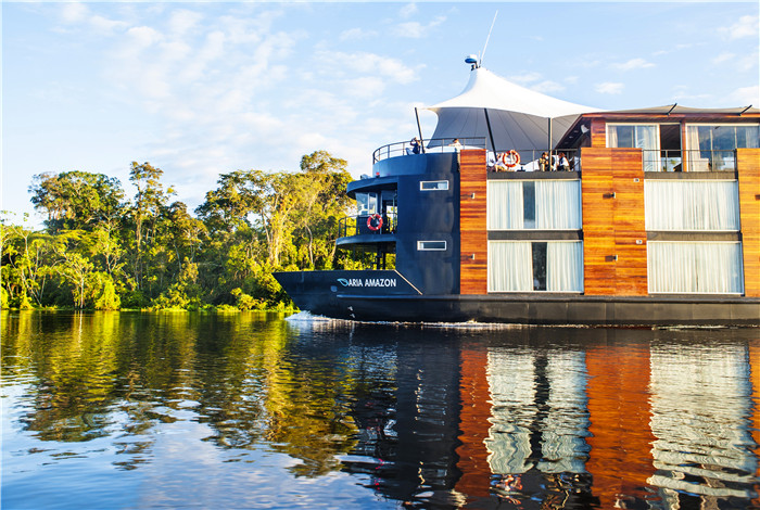 aria amazon 号河轮长45米,由来自秘鲁的顶尖建筑师 jordi puig 设计,于2011年首次出航,并在2015年进行了床上用品及艺术照明设施的战略更新。用餐和休闲区十分宽敞,并带有一个面向河景的按摩浴缸。aria amazon 号河轮的16间套房均带有面向亚马逊河的落地窗,每套面积23平方米。若有家庭需要,其中四间套房可以互连。我们还对按摩馆进行了装饰换新等全新升级,旨在为您提供更好的享受。船体最多可容纳32位乘客以及27名船员,其中包括护理人员和四名精通英语的自然专家向导。aqua expeditions 拥有经验丰富的河流驾驶员和最严格的河轮标准,全面保障水上旅行的顺利和安全。